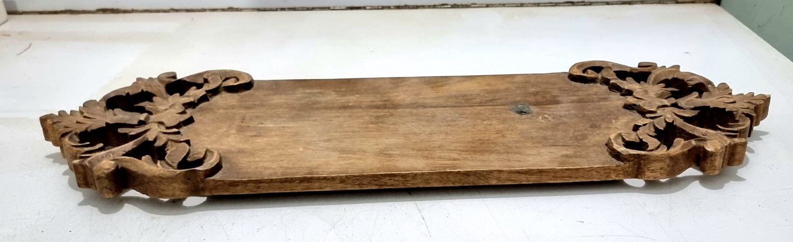 Elevate your table setting with the Heritage Leaf Wooden Serving Tray, a handcrafted masterpiece that blends traditional artistry with modern elegance. Made from premium solid wood, this tray features intricately carved leaf handles inspired by classic Rococo design, adding a touch of sophistication to any occasion. Perfect for serving cheese, bread, fruits, or beverages, it also doubles as a stylish decorative piece for your kitchen or dining area. Each tray is unique, showcasing the natural grain and warmth of real wood — a timeless addition to your handcrafted home décor collection.