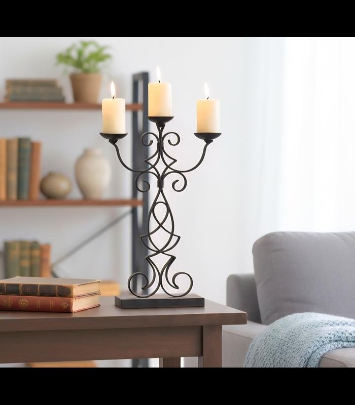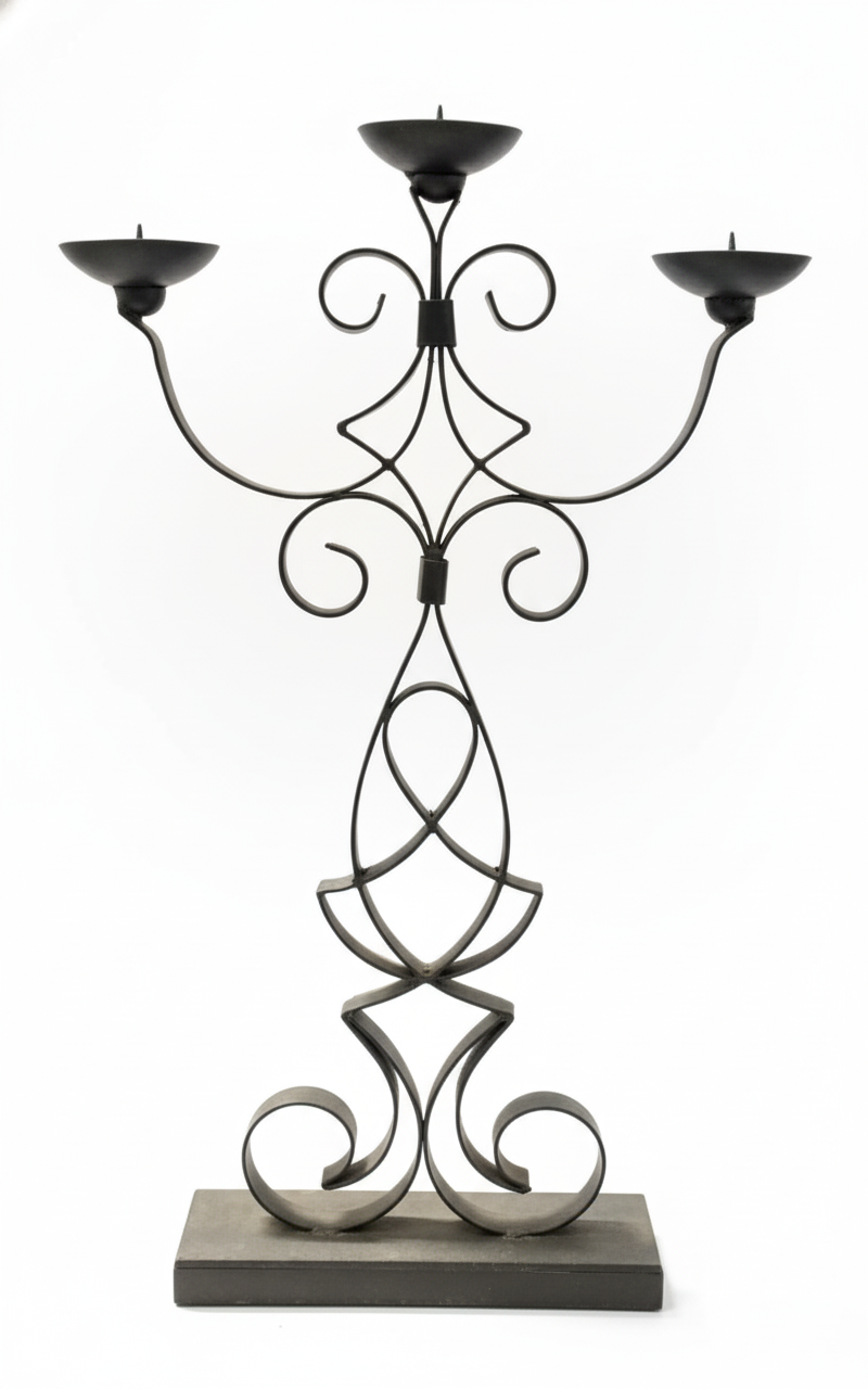 Illuminate your space with timeless elegance using the Ethereal Iron Scroll Candelabra. Handcrafted from sturdy wrought iron, this 3-arm candle holder features intricate scrollwork that blends classic artistry with modern sophistication. Perfect for living rooms, dining tables, or entryways, it creates a warm, inviting glow that elevates any décor. Ideal for both everyday ambiance and festive occasions, this piece brings an artisan charm to your home.