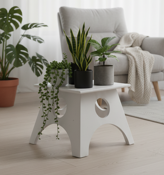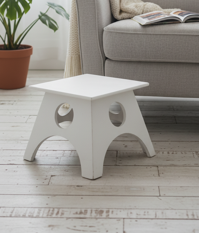 The Lunar Arch Mini Stool brings a touch of modern art to everyday living. Designed with clean geometric lines and signature circular cutouts, this compact piece combines strength and style in one sculptural form. Handcrafted in a matte white finish, it serves beautifully as a small seating option, plant stand, or bedside accent. Perfect for minimalist and contemporary spaces, its arch-inspired base adds a sense of balance and calm to any corner of your home.