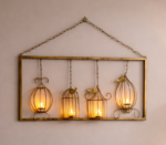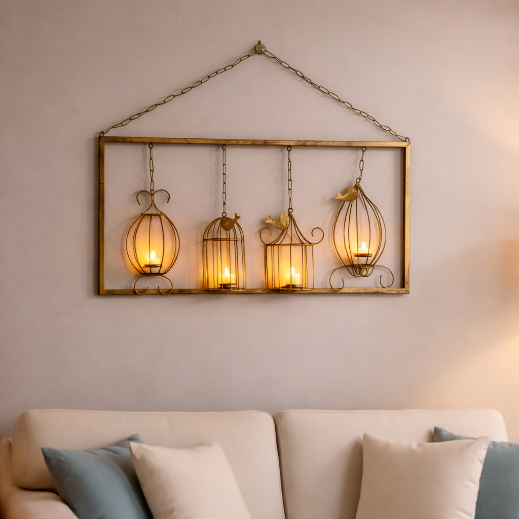 - Candle Holders: At the base of each of the four birdcages, there is a small, flat metal cup or dish designed to securely hold a tea light candle (or other small decorative filler).